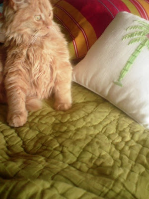 I like the small chest of drawers acting as night tables, the daybed and well, perhaps not the two boxes, but a little dressed up stool that has not yet found its place in the living room.